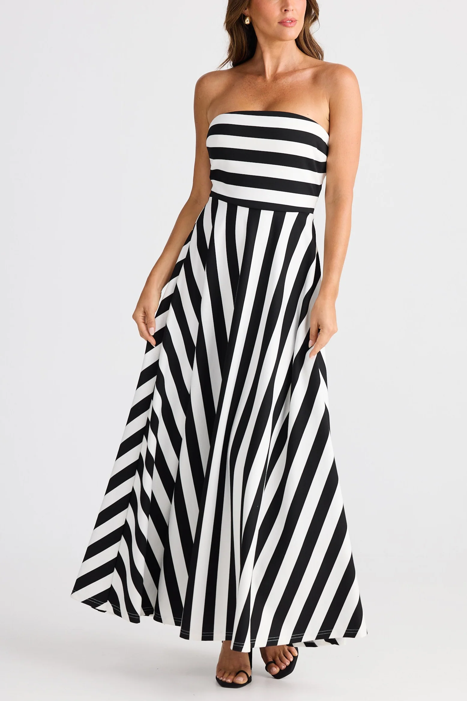 Brave + True Thandie Strapless Dress – Black Wide Stripe