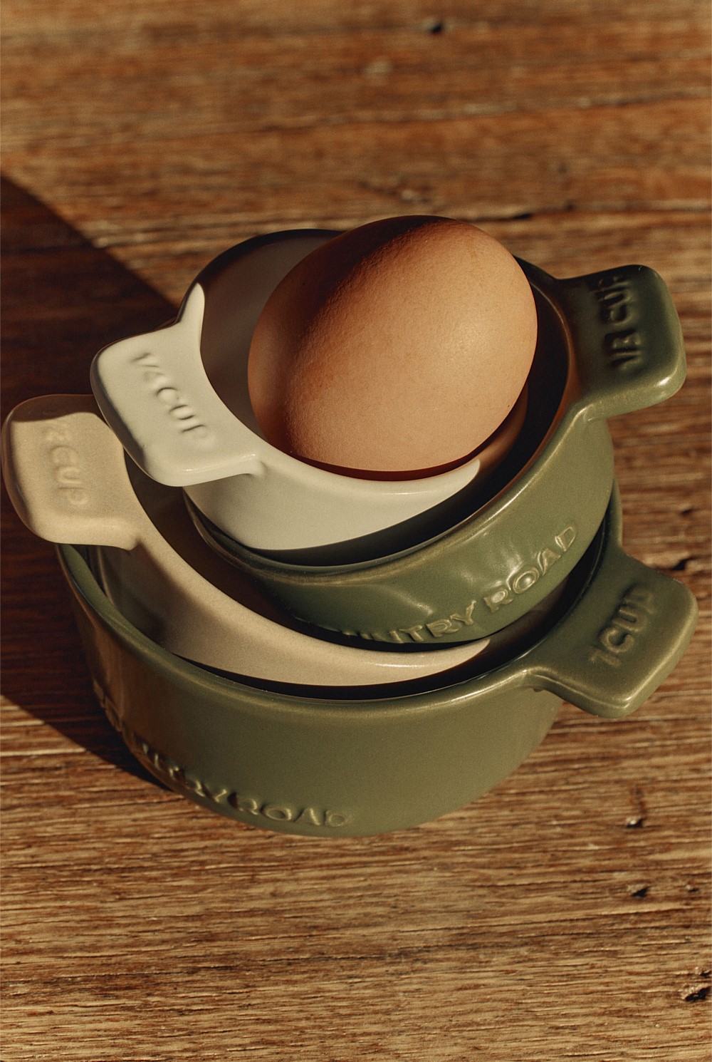 Made from stoneware with a hand-dipped glaze, our Demm range features clean lines and subtle logo detailing to elevate everyday moments in the kitchen. This set includes four measuring cups.