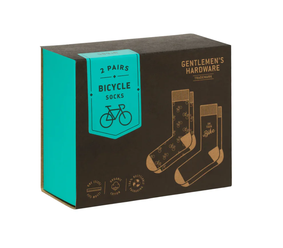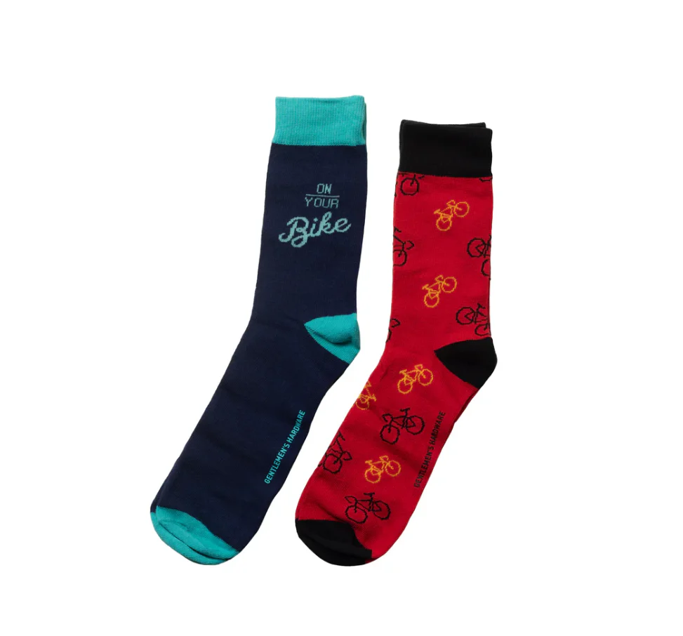 Give a practical gift for the bicycle enthusiast and pedaler in your life with the Set of 2 Bike Crew Socks from Gentlemen's Hardware. Have some fun with a pop of color for a casual ride or daily commute wearing this pack of two pairs of soft combed cotton socks. Enjoy these cycling socks while out for a ride or grinding at your 9-5.