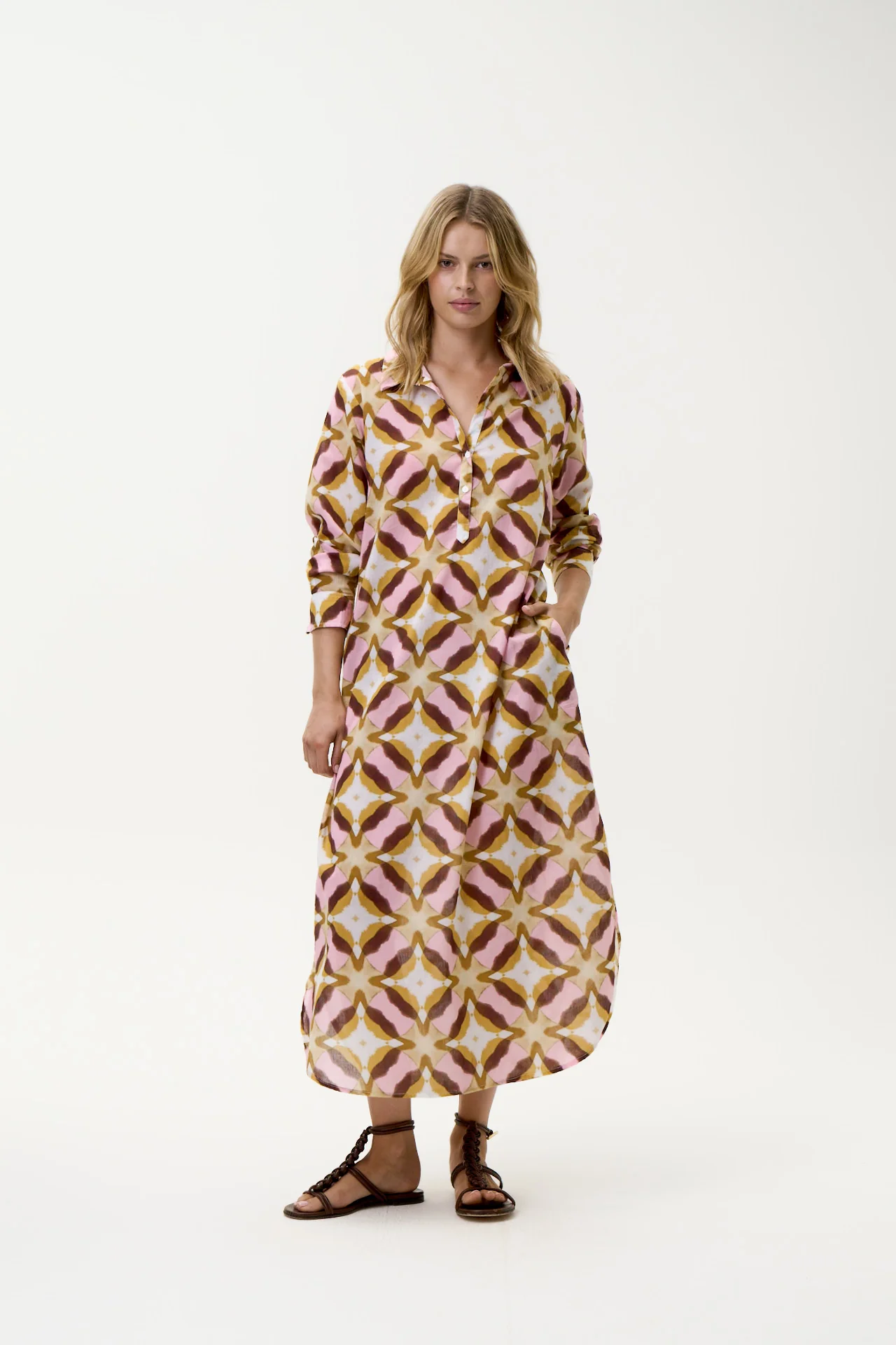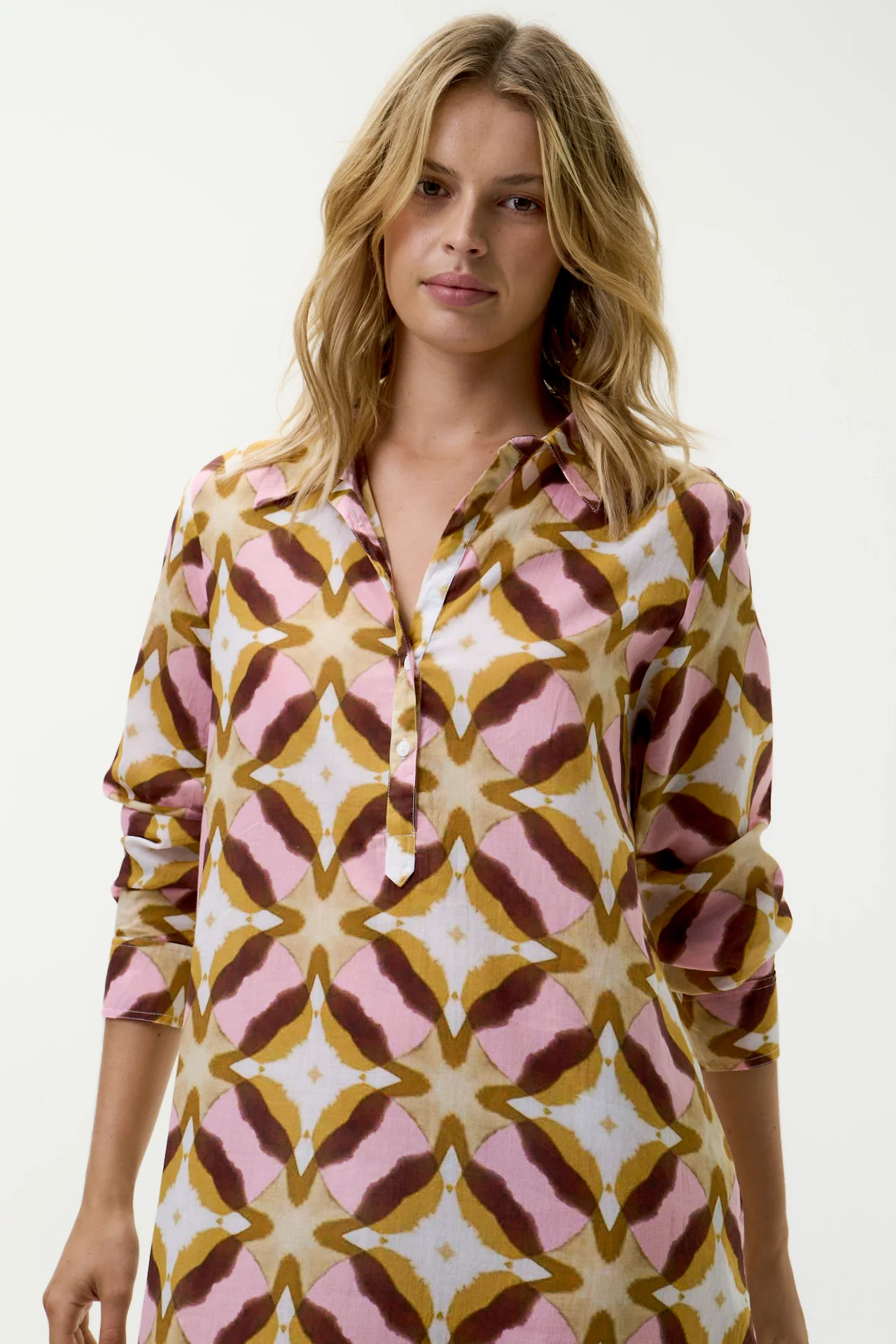 The Long Gilli is a staple for effortless summer days. Crafted from 100% washed cotton, the style features an eye-catching button-down neckline and a slightly rounded hem with flattering side splits.