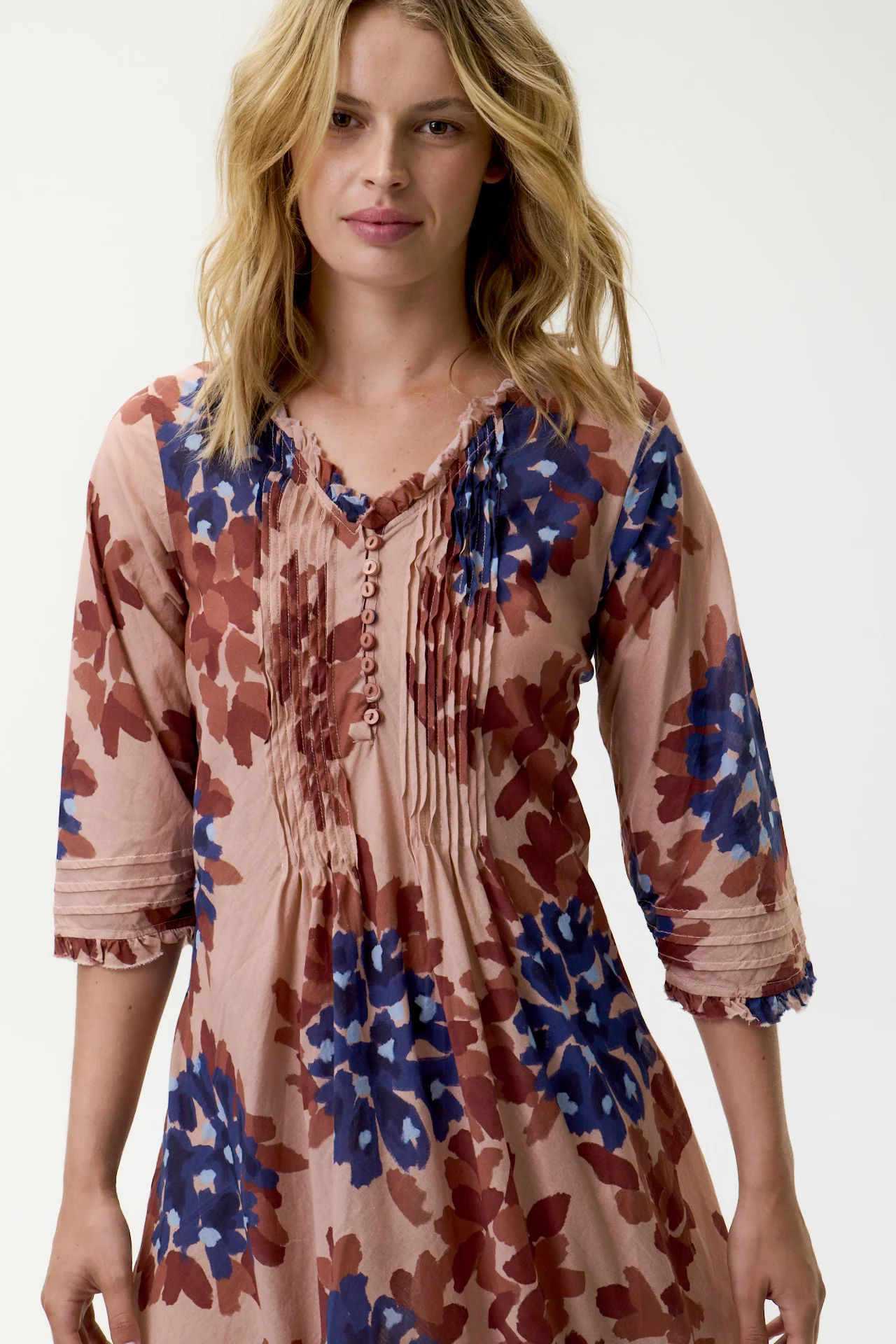 The Long Poppy is our longest-standing and most loved style. A true summer essential, the style is cut from 100% washed cotton and complements all body shapes with a flattering, looser silhouette. It’s finished with delicate raw ruffles around the neckline and sleeves and sits just above the ankle.