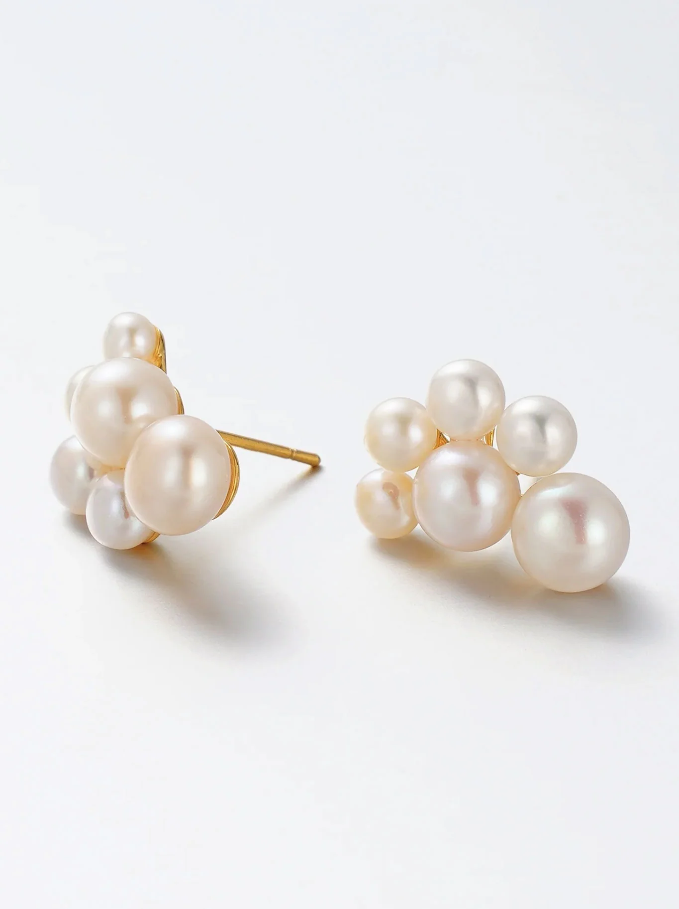 The Josephine Earrings are a true statement of elegance, featuring a cluster of luminous freshwater pearls in varying sizes. Designed to catch the light from every angle, this sculptural style offers a modern yet timeless appeal. Perfect for brides, bridal parties, or any special occasion, Josephine brings sophistication and romance to your look with effortless grace.